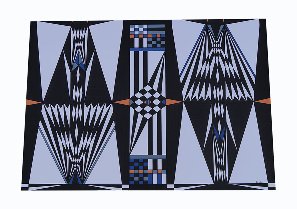 Graphisch geometrisch entwickelt Krohne seine eigene, unverwechselbare Sprache: anknüpfend an die Tradition, in der jedes Zeichen noch von Sinnhaftigkeit erfüllt war und durch Farbe, Form und Linien eine bestimmte Kraft repräsentierte, greift Krohne die grafische Lehre wieder auf, um dann einen neuen Bogen zu Spannen zu den zielen der Geometrischen Moderne.